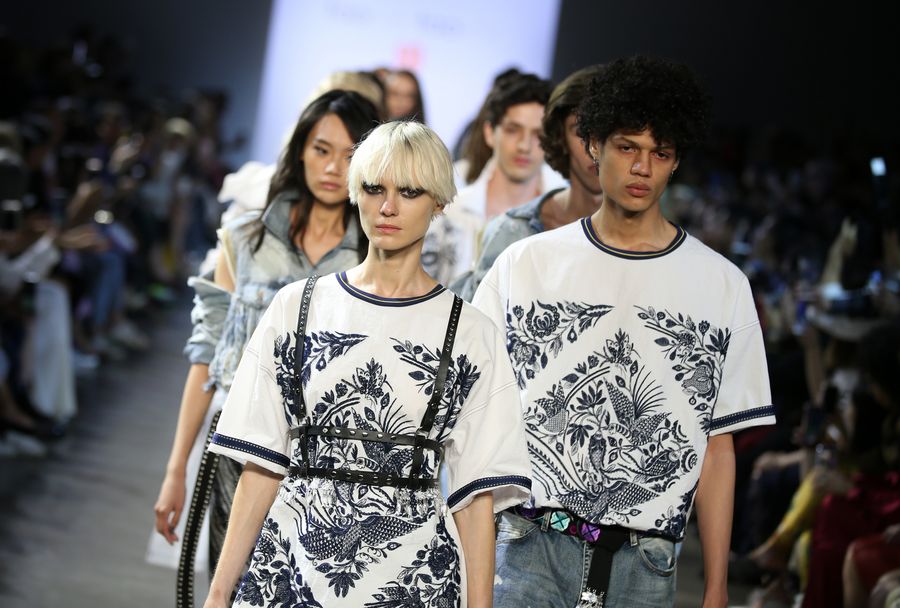 Models present creations from Taoray Taoray Spring/Summer 2020 collection during the New York Fashion Week, on Sept. 11, 2019. (Xinhua/Qin Lang)