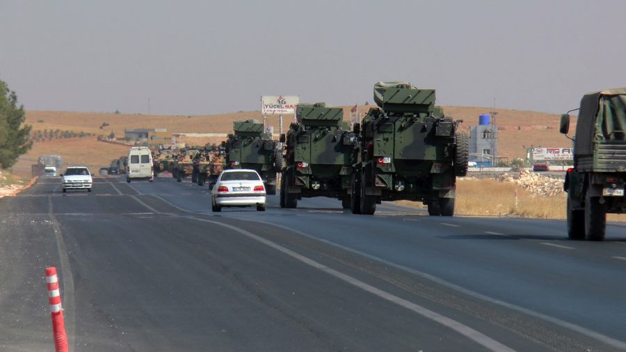 Vehicles of the Turkish army head for Akcakale near the border between Turkey and Syria on Oct. 9, 2019. (Photo by Mustafa Kaya/Xinhua)