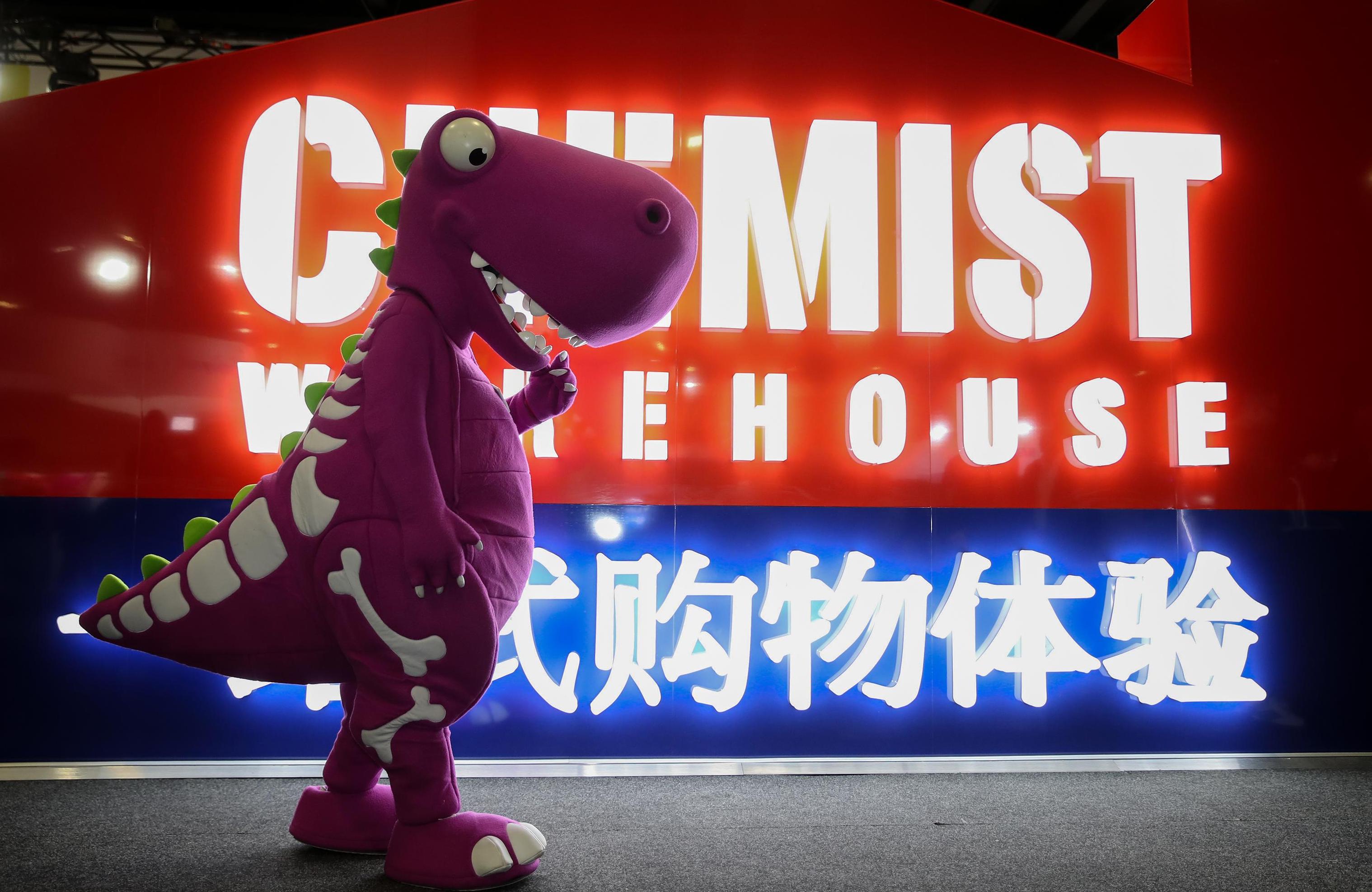 A mascot walks past an exhibition stand during the Alibaba E-Commerce Expo in Sydney, Australia, Aug. 30, 2019. (Xinhua/Bai Xuefei)