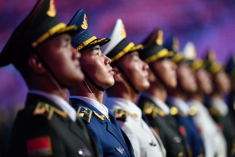 Soldiers get ready for the opening ceremony of the 7th International Military Sports Council (CISM) Military World Games in Wuhan, capital of central China's Hubei Province, Oct. 18, 2019. (Xinhua/Xiong Qi)