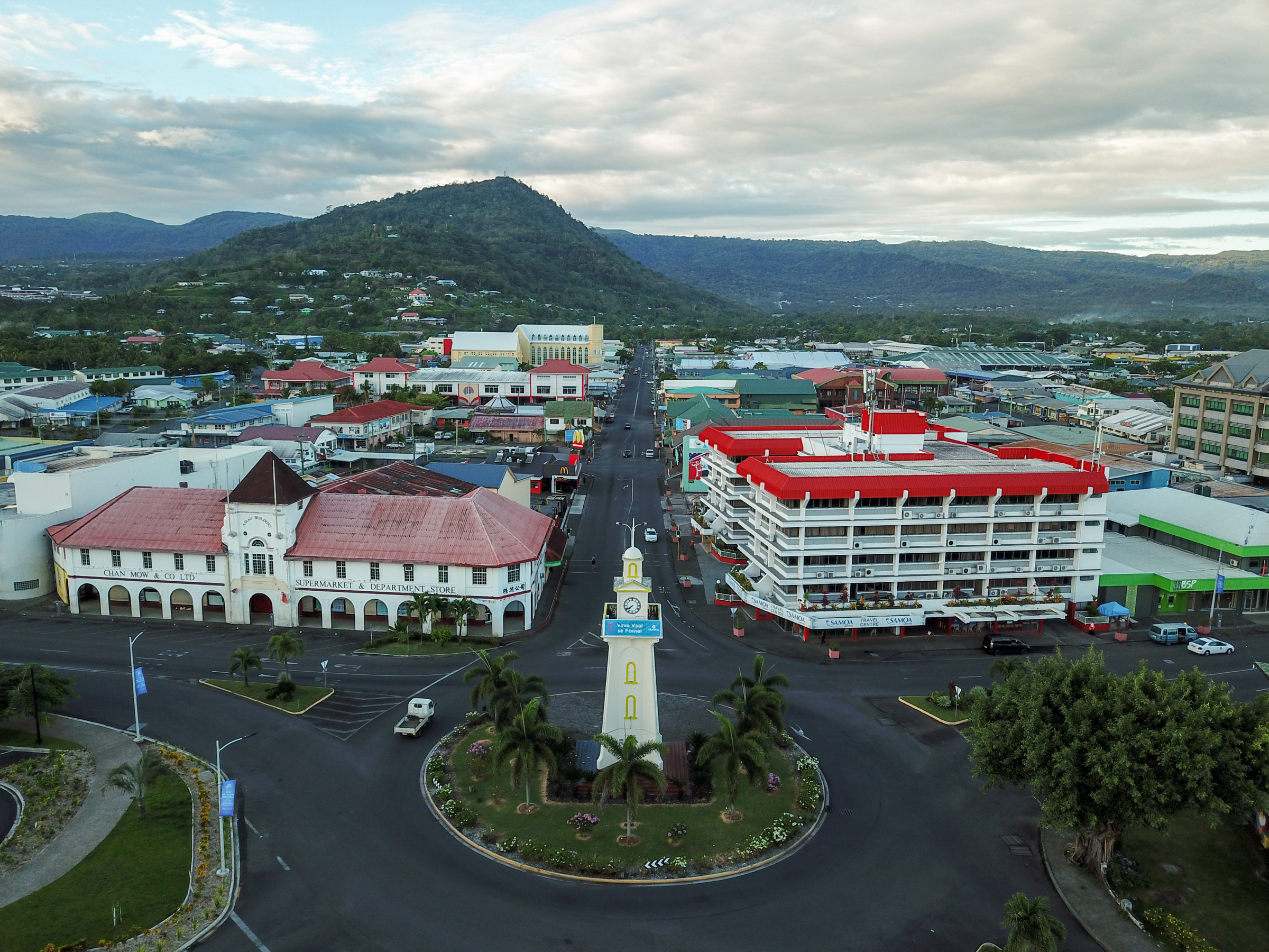 Photo taken on Oct. 19, 2019 shows the Clock Tower, a landmark in Apia, Samoa. (Xinhua/Guo Lei)