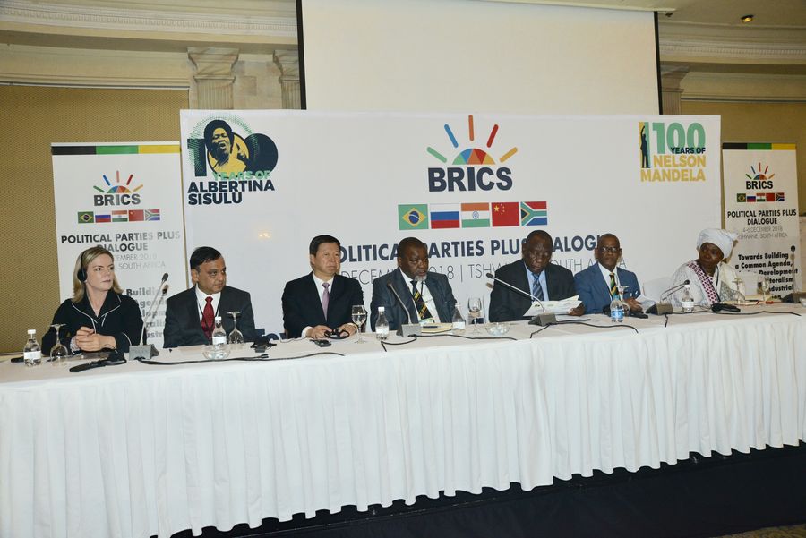 Representatives of BRICS nations attended the BRICS political parties plus dialogue in Pretoria, South Africa, on Dec. 4, 2018. (Xinhua/Zhao Xi)