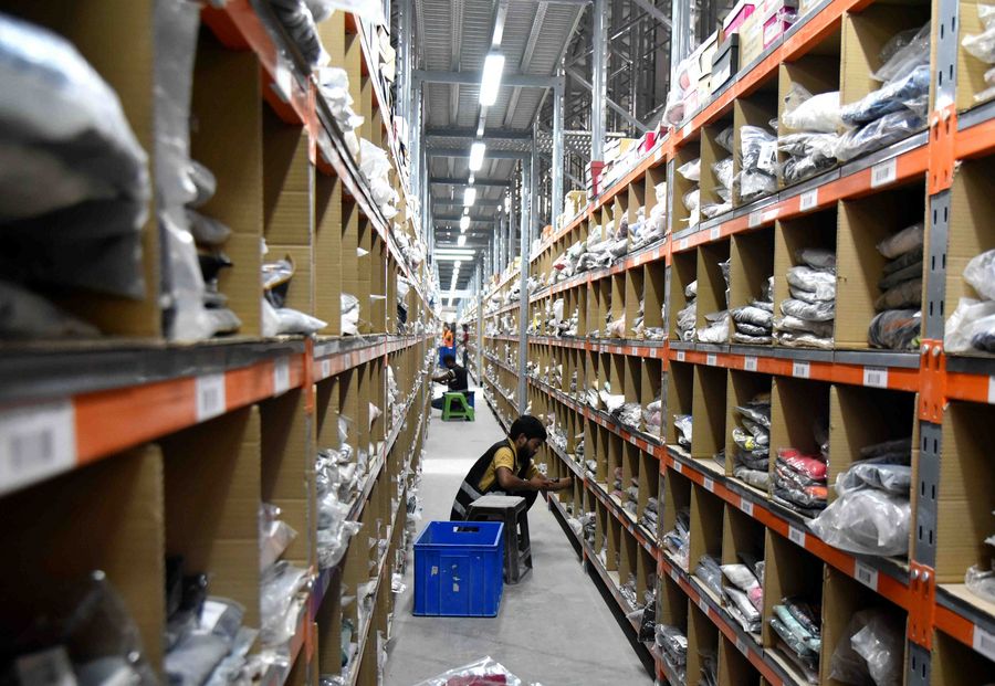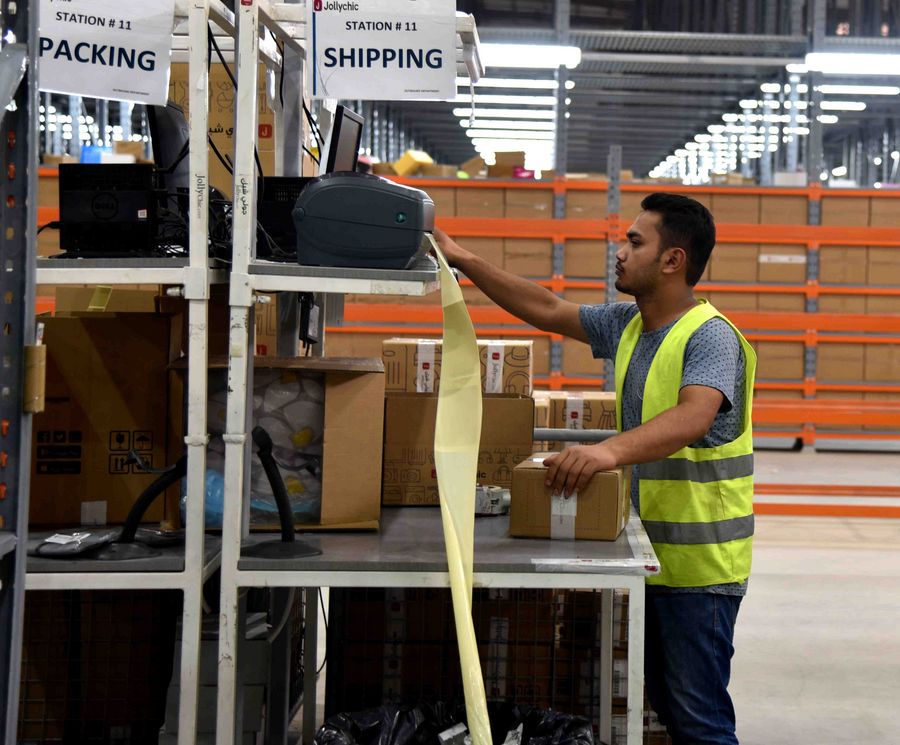 A worker works inside the warehouse of Jollychic, a popular online retailer run by a Chinese company, in the Saudi capital of Riyadh, on June 25, 2018. (Xinhua/Wang Bo)