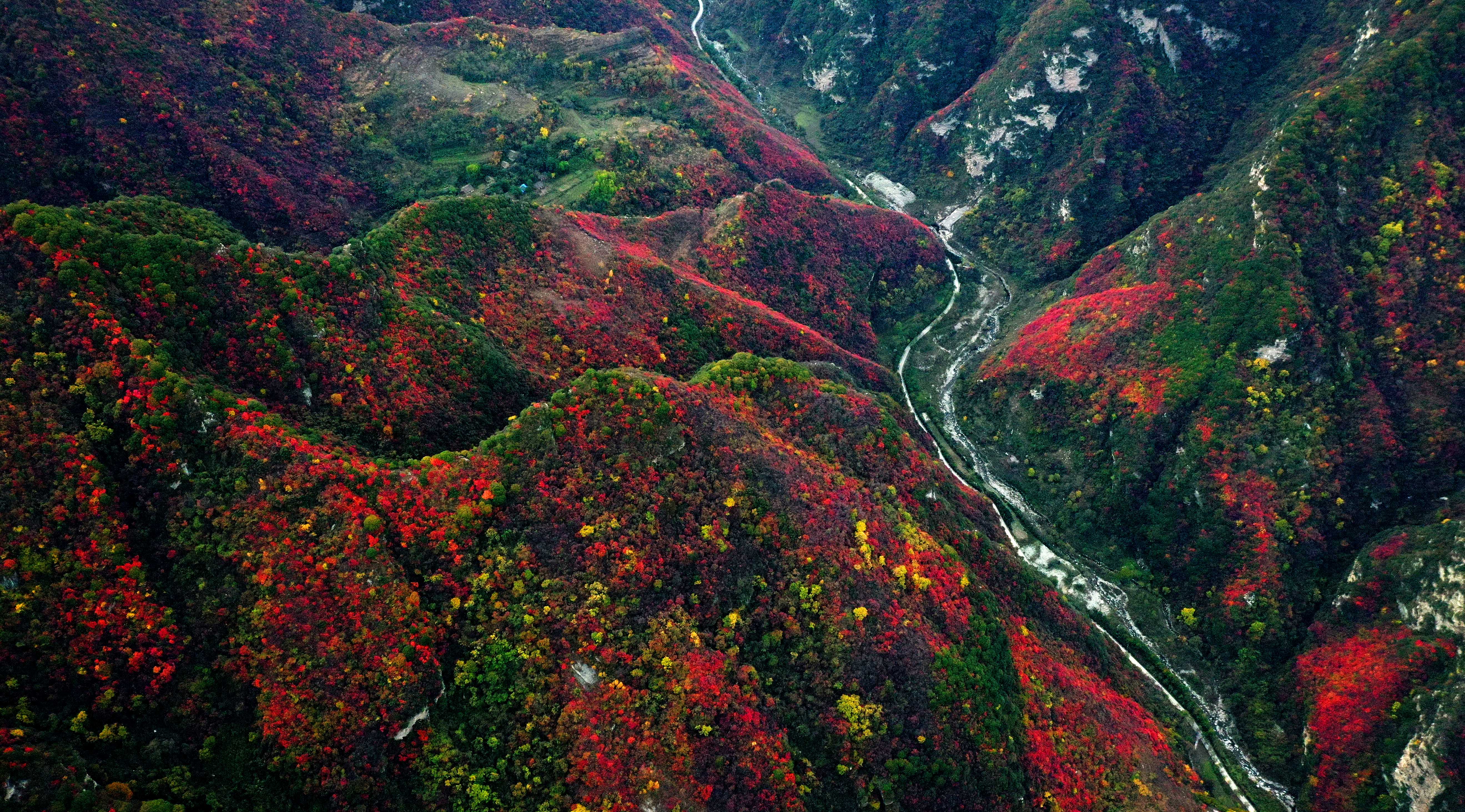 Aerial photo taken on Oct. 31, 2019 shows the scenery of Shaohua Mountain in northwest China's Shaanxi Province. (Xinhua/Liu Xiao)