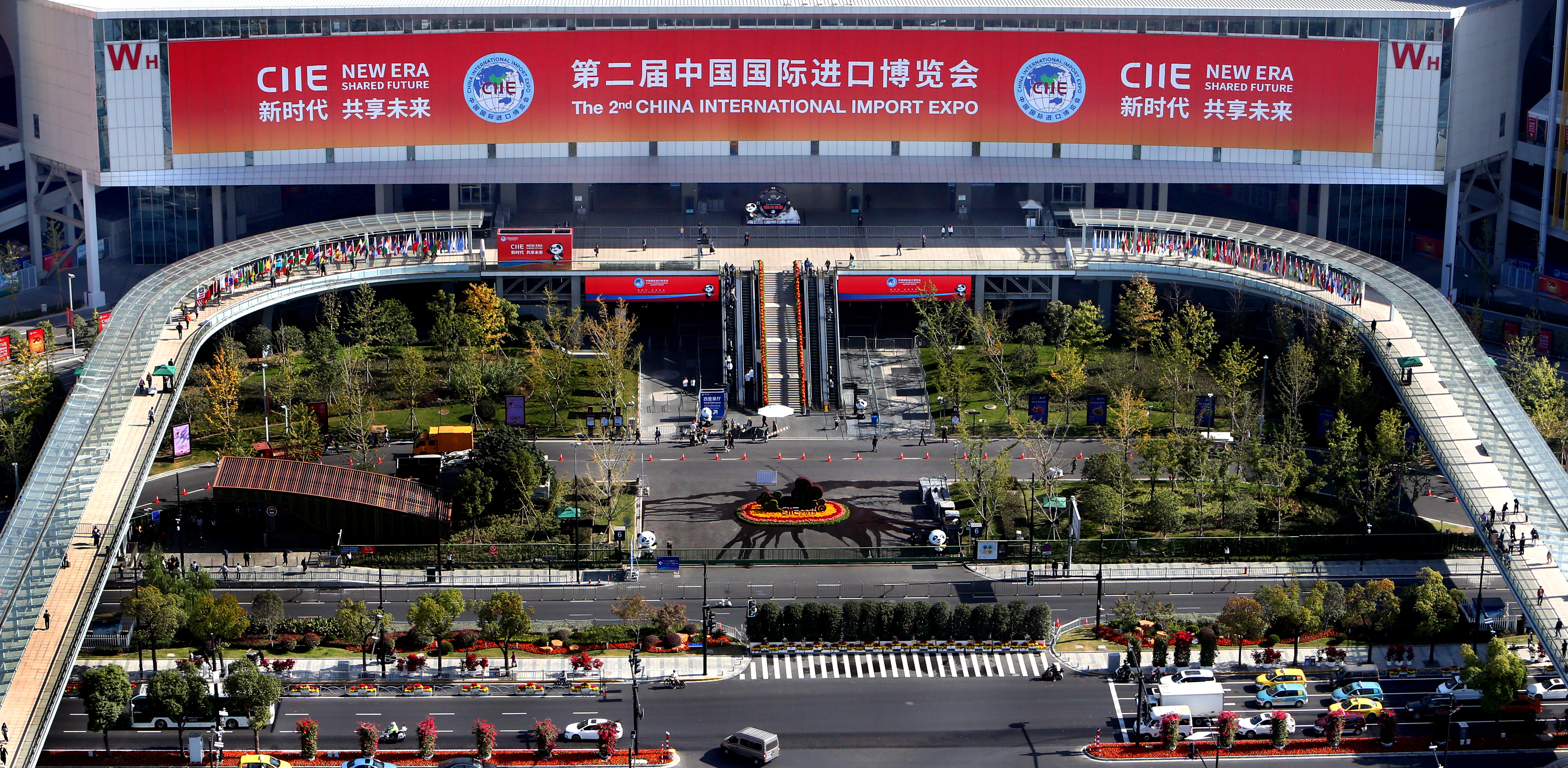 Aerial photo taken on Nov. 1, 2019 shows a view of the National Exhibition and Convention Center (Shanghai) where the second China International Import Expo (CIIE) is to be held, in Shanghai, east China. (Xinhua/Fan Jun)