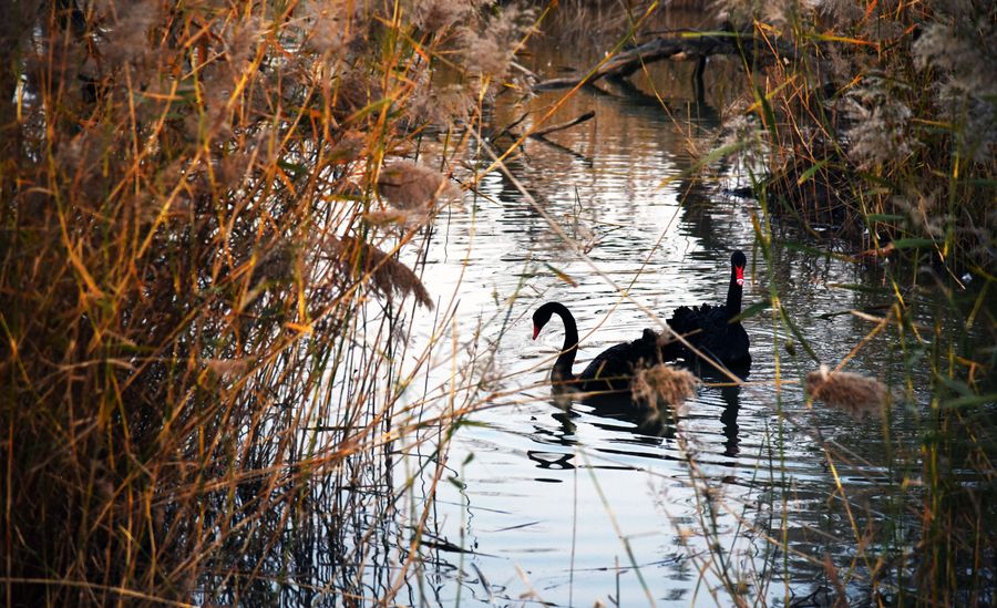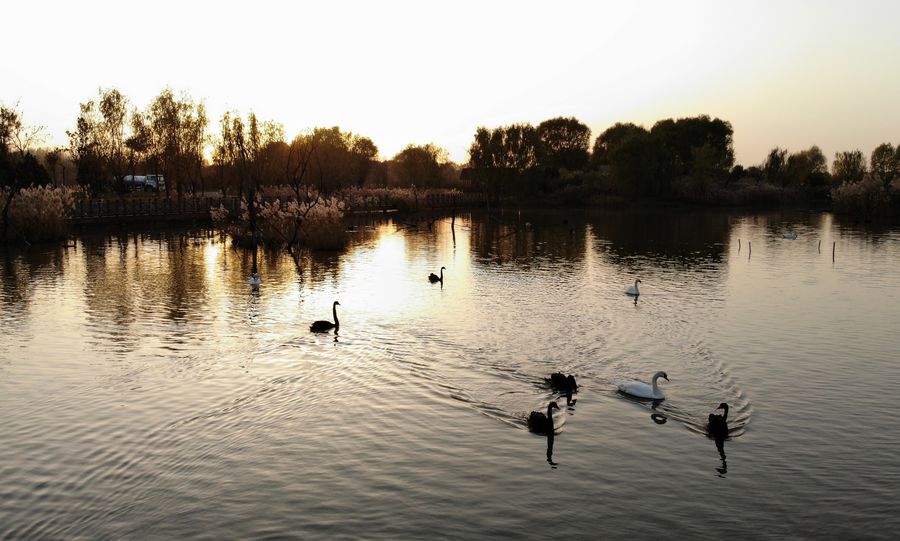 Photo taken on Nov. 18, 2019 shows swans at the Jixi national wetland, located in western Jinan, east China's Shandong Province.(Xinhua/Wang Kai)