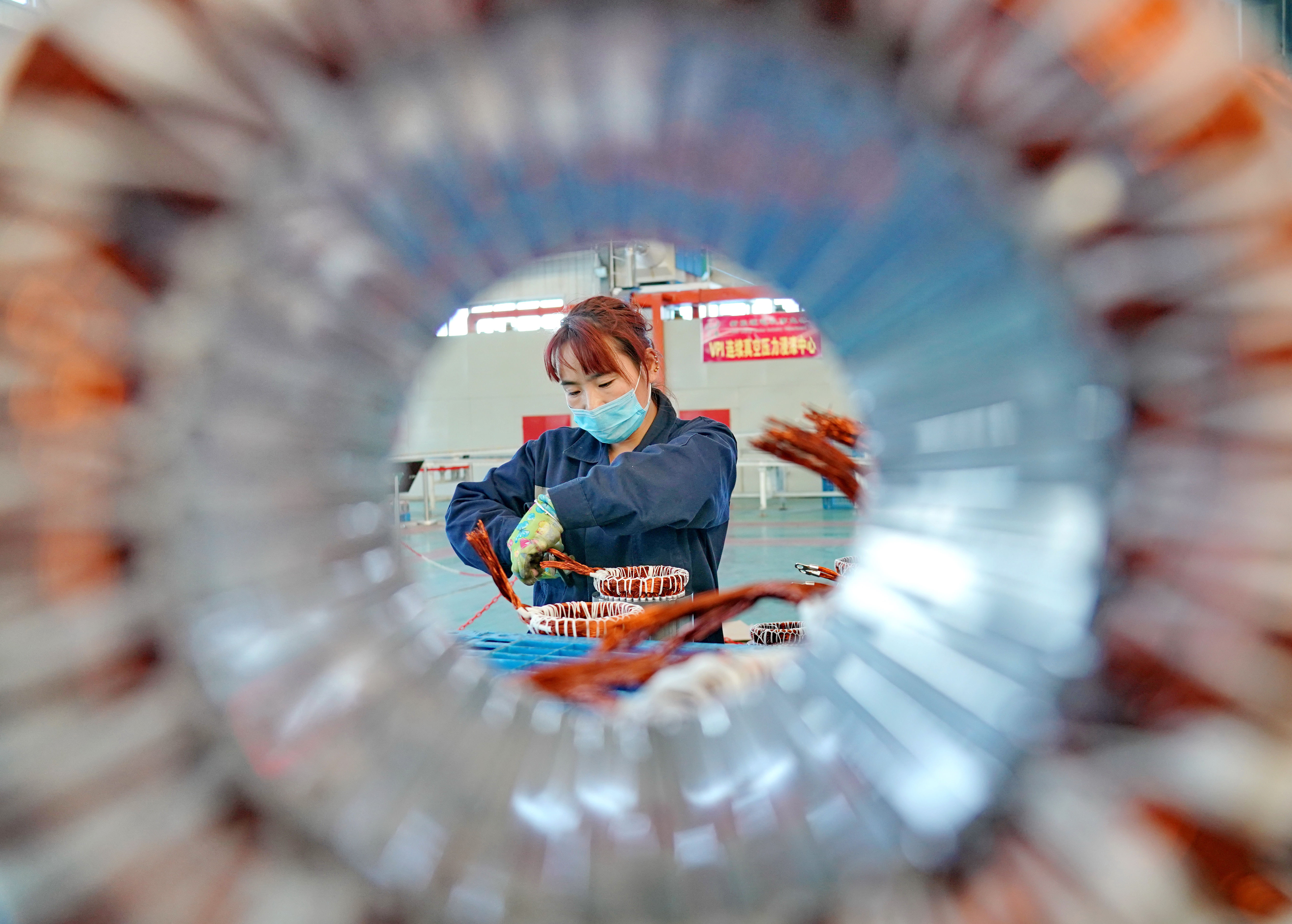 A staff member works at an electromechanical equipment company in Kaiping District of Tangshan, north China's Hebei Province, Nov. 17, 2019. (Xinhua/Yang Shiyao)