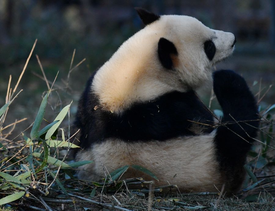 Giant panda Qiao Qiao eats at Qinling Research Base of Giant Panda Breeding of Shaanxi Academy of Forestry in Xi'an, Dec. 3, 2019. (Xinhua/Zhang Bowen)