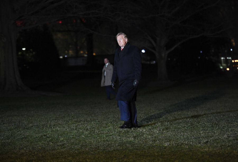 U.S. President Donald Trump arrives at the White House in Washington D.C. Dec. 19, 2019. The Democrat-led U.S. House of Representatives voted on Wednesday to impeach President Donald Trump for abuse of power and obstruction of Congress. (Xinhua/Liu Jie)