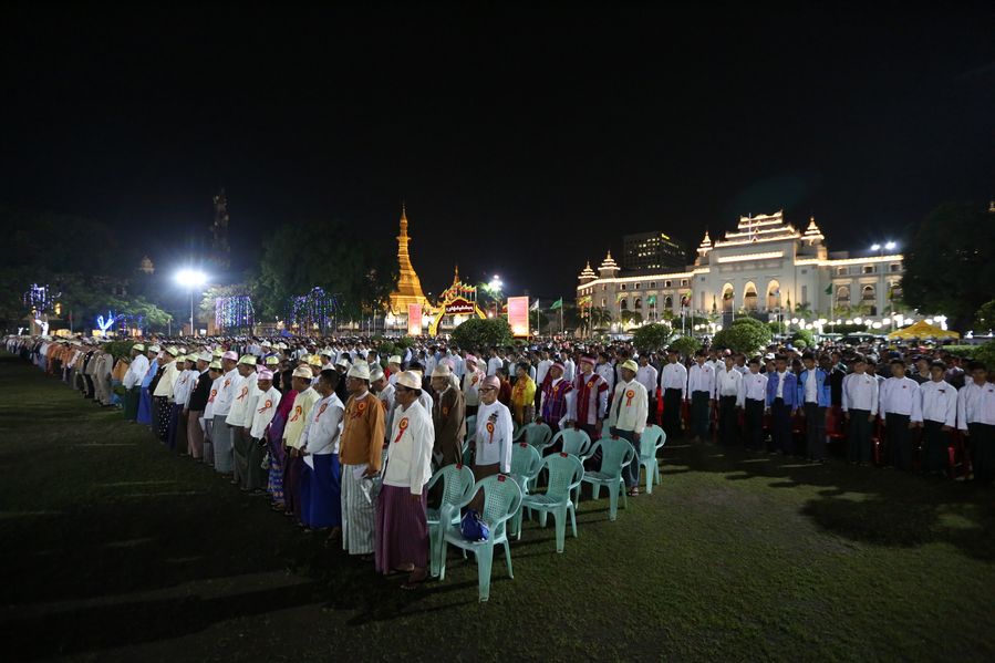 People attend a flag-raising ceremony to mark the 72nd anniversary of Myanmar's Independence in Yangon, Myanmar, Jan. 4, 2020. (Xinhua/U Aung)