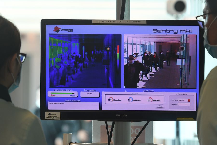 Passengers undergo thermal scanning upon arrival at Singapore Changi Airport in Singapore, Jan 22, 2020. (Photo by Then Chih Wey/Xinhua)