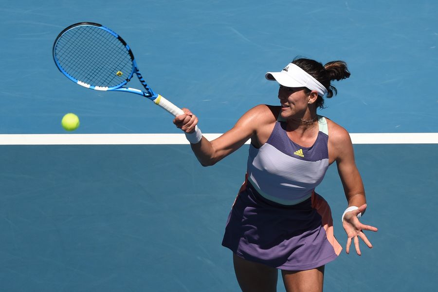 Garbine Muguruza of Spain competes during the women's singles quarterfinal against Anastasia Pavlyuchenkova of Russia at the Australian Open tennis tournament in Melbourne, Australia, Jan. 29, 2020. (Photo by Bai Xue/Xinhua)
