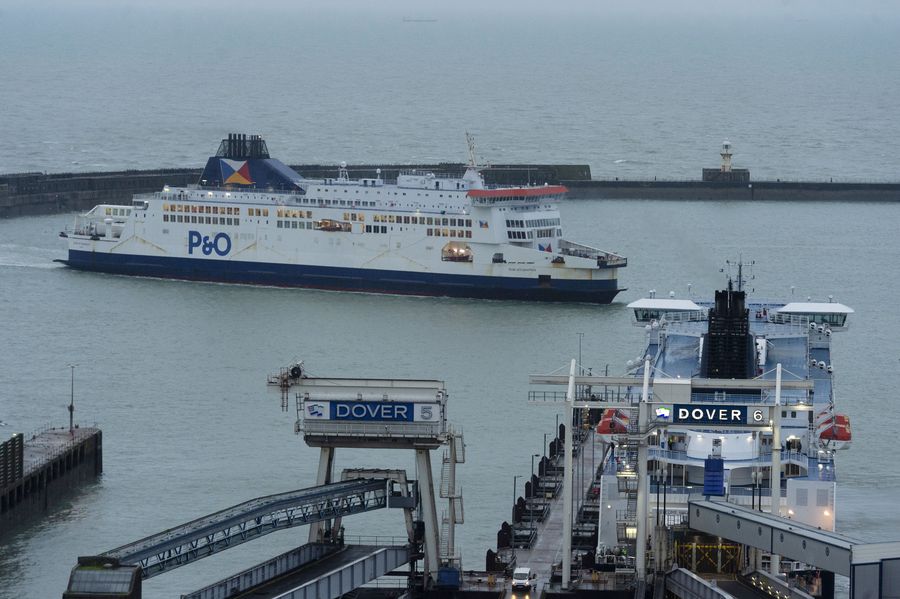 A ferry arrives at the Port of Dovert on the first day after Brexit in Dover, Britain, Feb. 1, 2020.(Photo by Ray Tang/Xinhua)