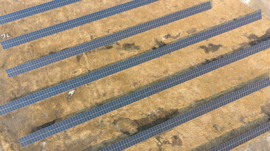 An aerial drone photo taken on March 25, 2026 shows the photovoltaic panels at the low-carbon demonstration zone of Lamadian Oilfield in Daqing, northeast China's Heilongjiang Province. (Xinhua/Wang Song)