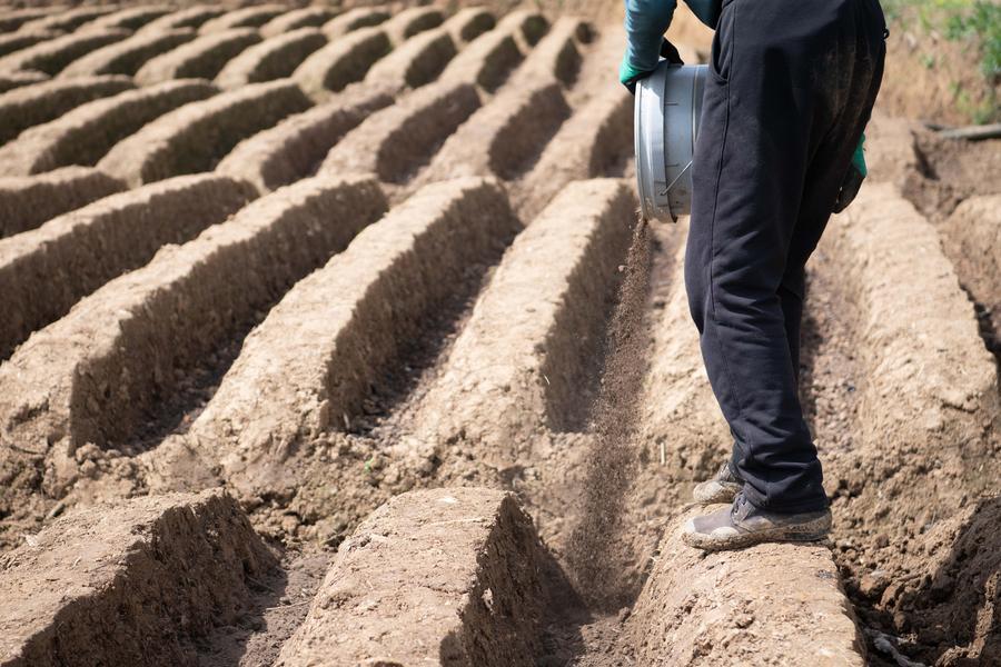 A farmer applies fertilizer in a field in Datong Town of Tongling, east China's Anhui Province, on April 5, 2026. (Xinhua/Zhang Duan)