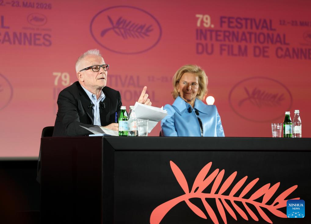 This photo taken on April 9, 2026 shows a press conference held by the Committee of Cannes Film Festival in Paris, France. The Committee of Cannes Film Festival held the press conference on Thursday to announce this year's official selection. (Xinhua/Wu Huiwo)