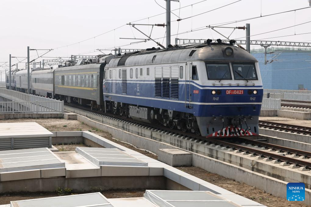 A test train is about to depart from Xiong'an Railway Station in the Xiong'an New Area, north China's Hebei Province, April 15, 2026. The Hebei section of the Xiong'an-Shangqiu High-speed Railway kicked off its coordinated debugging and test on Wednesday.