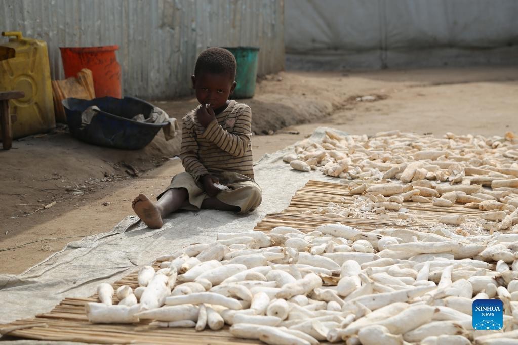 A child is seen in a camp for internally displaced persons (IDPs) in Ituri province, northeastern Democratic Republic of the Congo, March 17, 2022. Despite all the challenges, peace and state authority will be restored in Ituri, a violence-laden province in northeastern Democratic Republic of the Congo (DRC), reassured Lieutenant-General Johnny Luboya, Ituri's military governor, in a recent exclusive interview with Xinhua. (Photo by Alain Uaykani/Xinhua)