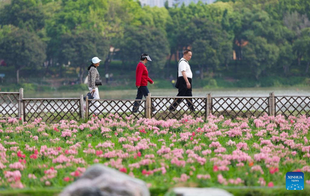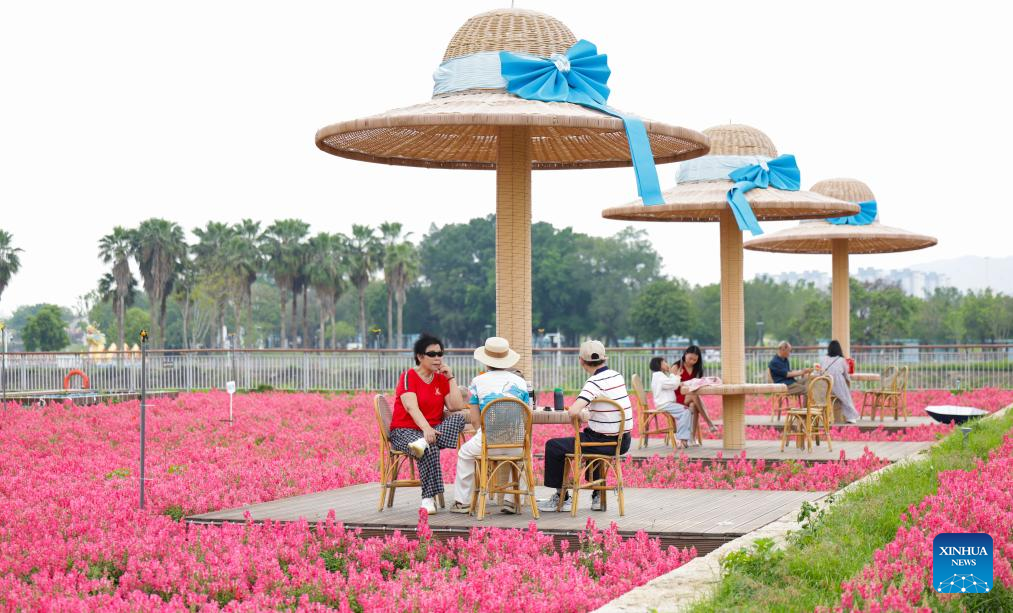 People enjoy leisure time in the Long Jiang Years tourist area in Zhangzhou City, southeast China's Fujian Province, on April 11, 2026.