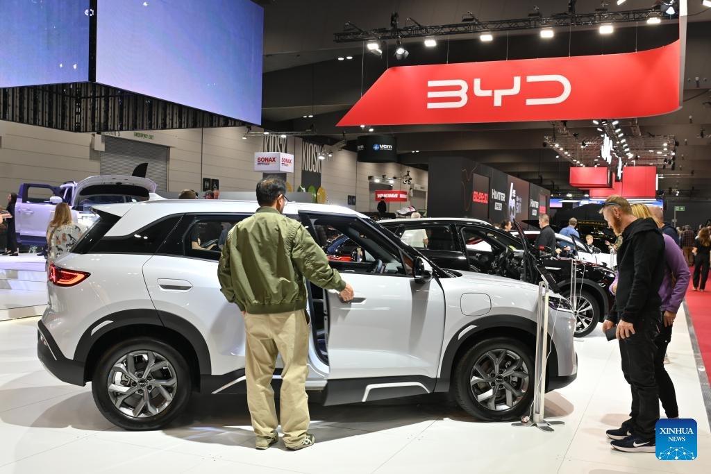 People visit the BYD stand during the 2026 Melbourne Motor Show in Melbourne, Australia, April 10, 2026. (Xinhua/Xu Haijing)