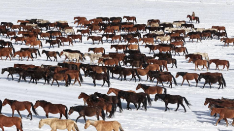 Horse herds move to natural grasslands during plowing season in NW China's Gansu