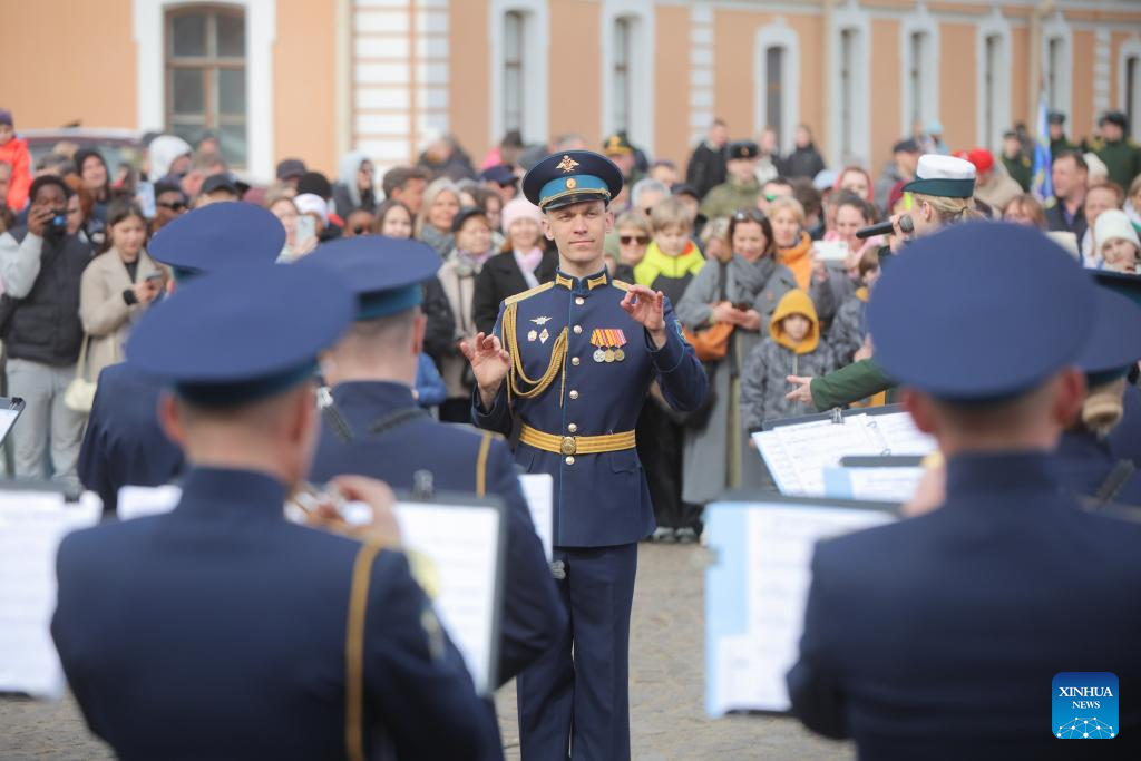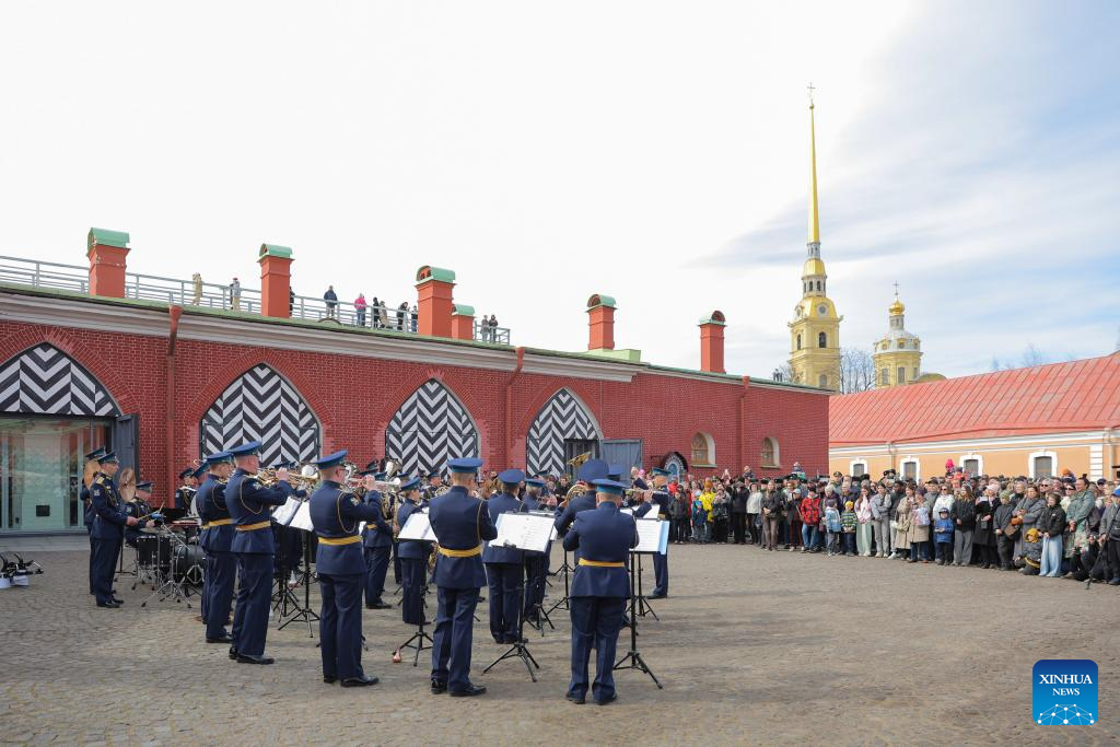 A concert in celebration of Russia's Cosmonautics Day is held by students from the Mozhaisky Military Space Academy in St. Petersburg, Russia, April 12, 2026. St. Petersburg marked Russia's Cosmonautics Day with a series of events, including a concert at the Peter and Paul Fortress and free access to the Museum of Space Exploration and Rocket Technology V.P. Glushko, drawing large crowds of visitors. (Photo by Irina Motina/Xinhua)