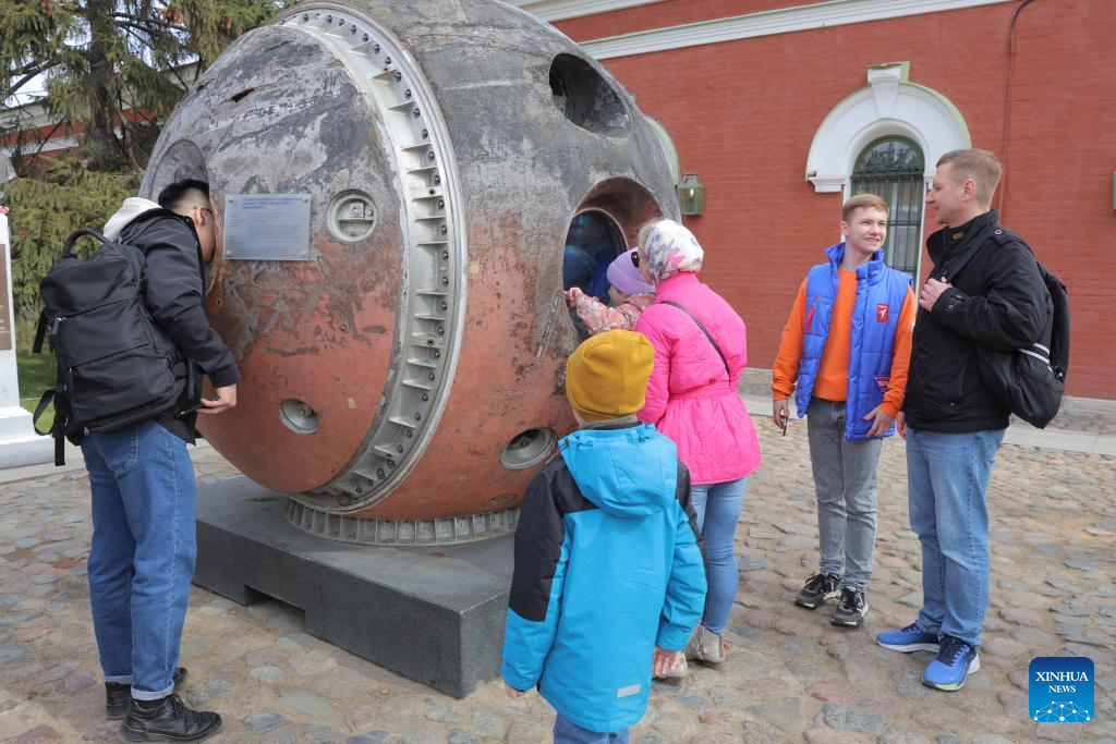 People visit the Museum of Space Exploration and Rocket Technology V.P. Glushko in St. Petersburg, Russia, April 12, 2026. St. Petersburg marked Russia's Cosmonautics Day with a series of events, including a concert at the Peter and Paul Fortress and free access to the Museum of Space Exploration and Rocket Technology V.P. Glushko, drawing large crowds of visitors. (Photo by Irina Motina/Xinhua)