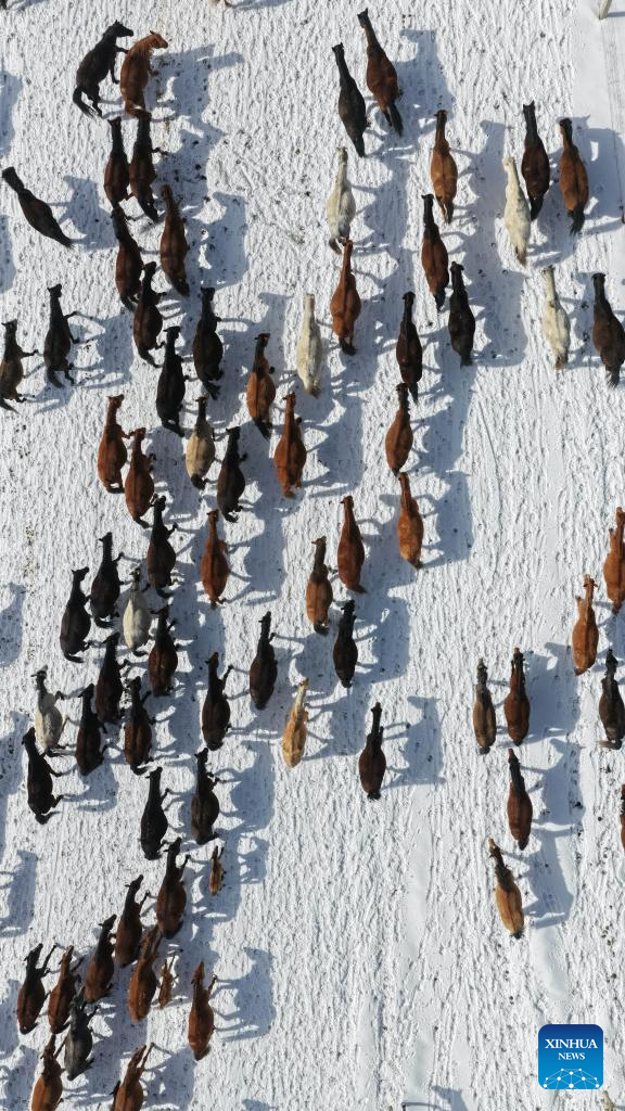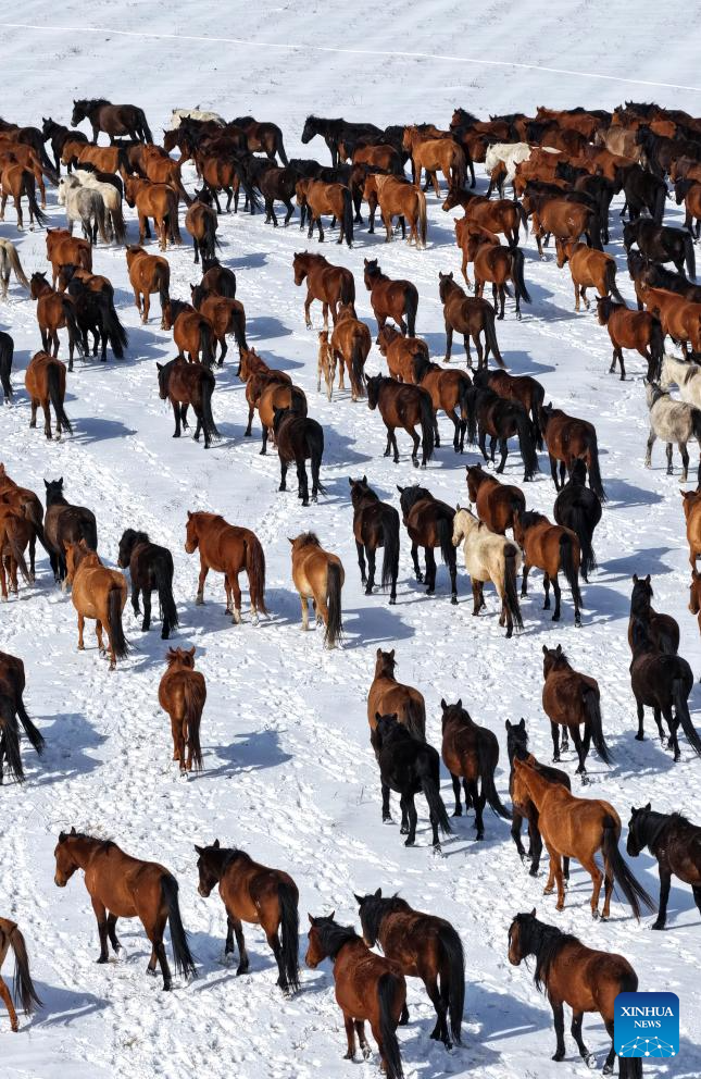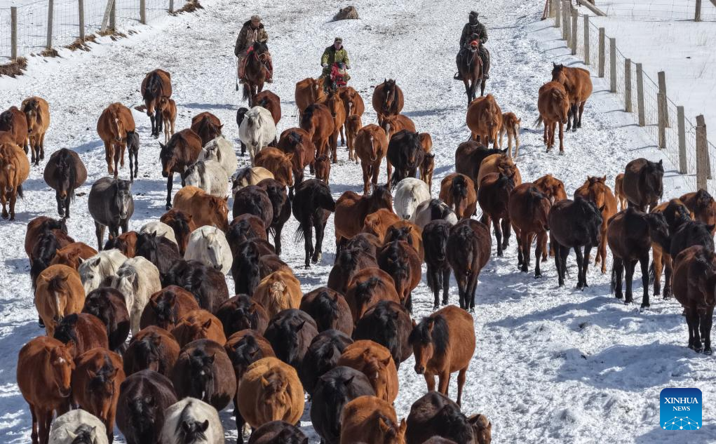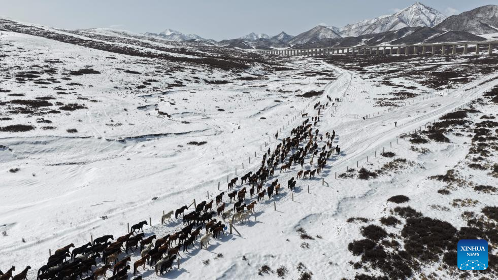 Horse herds move to natural grasslands during plowing season in NW China's Gansu