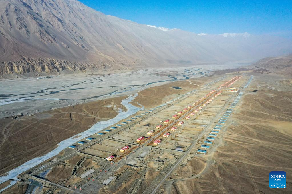Aerial photo taken on Feb. 24, 2022 shows the Rasekam Village of Taxkorgan Tajik Autonomous County, northwest China's Xinjiang Uygur Autonomous Region.
