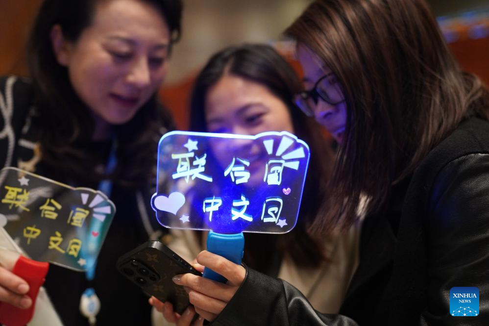 People attend a celebration marking the UN Chinese Language Day at the UN headquarters in New York, on April 13, 2026. A celebration titled Chinese Language Shining Civilizations was held at the UN headquarters in New York to mark the UN Chinese Language Day on Monday. (Xinhua/Zhang Fengguo)
