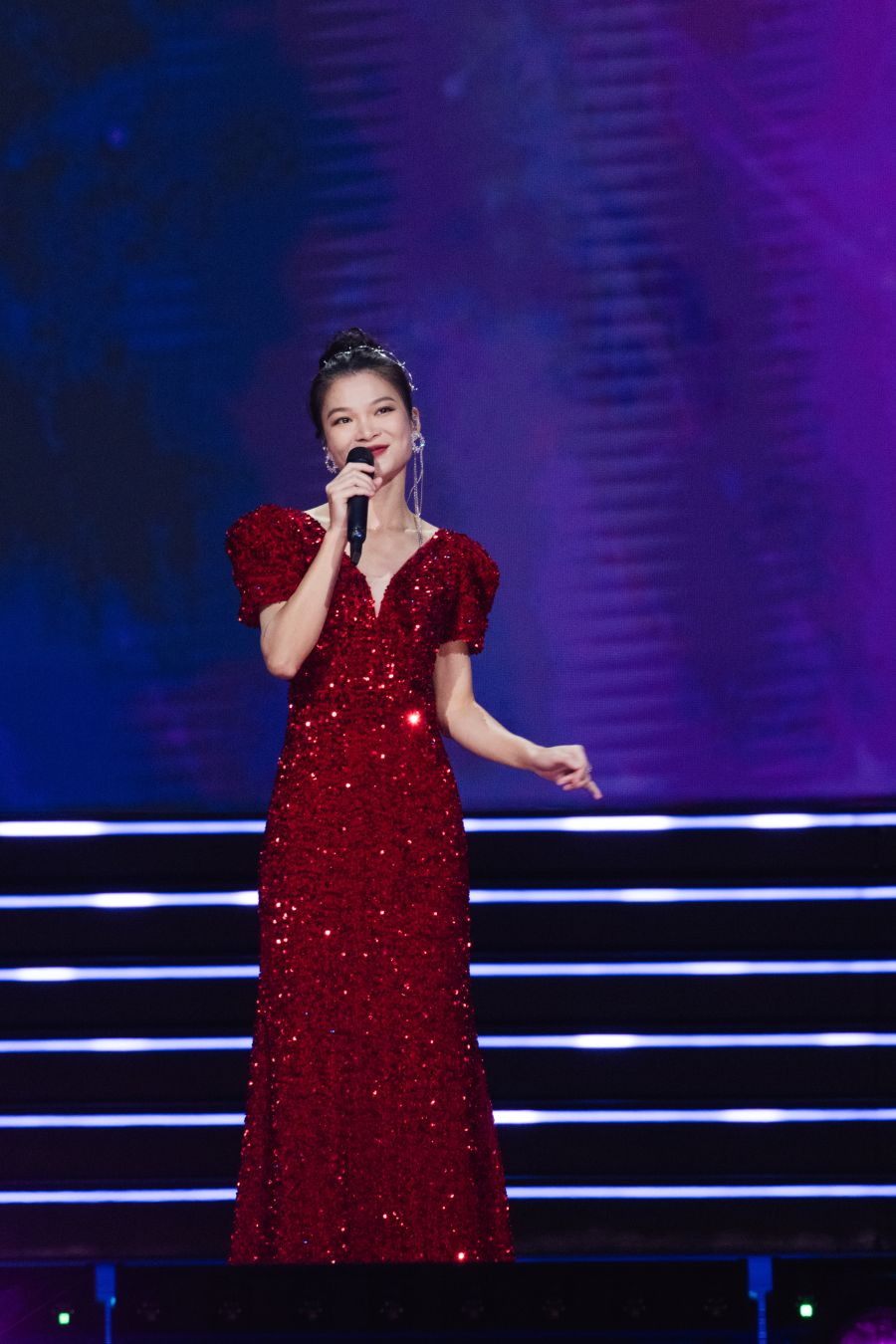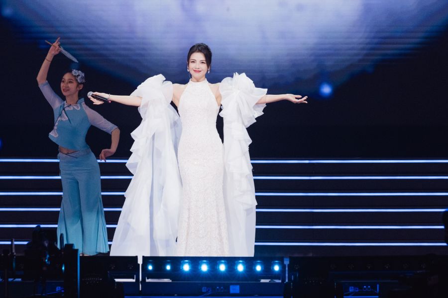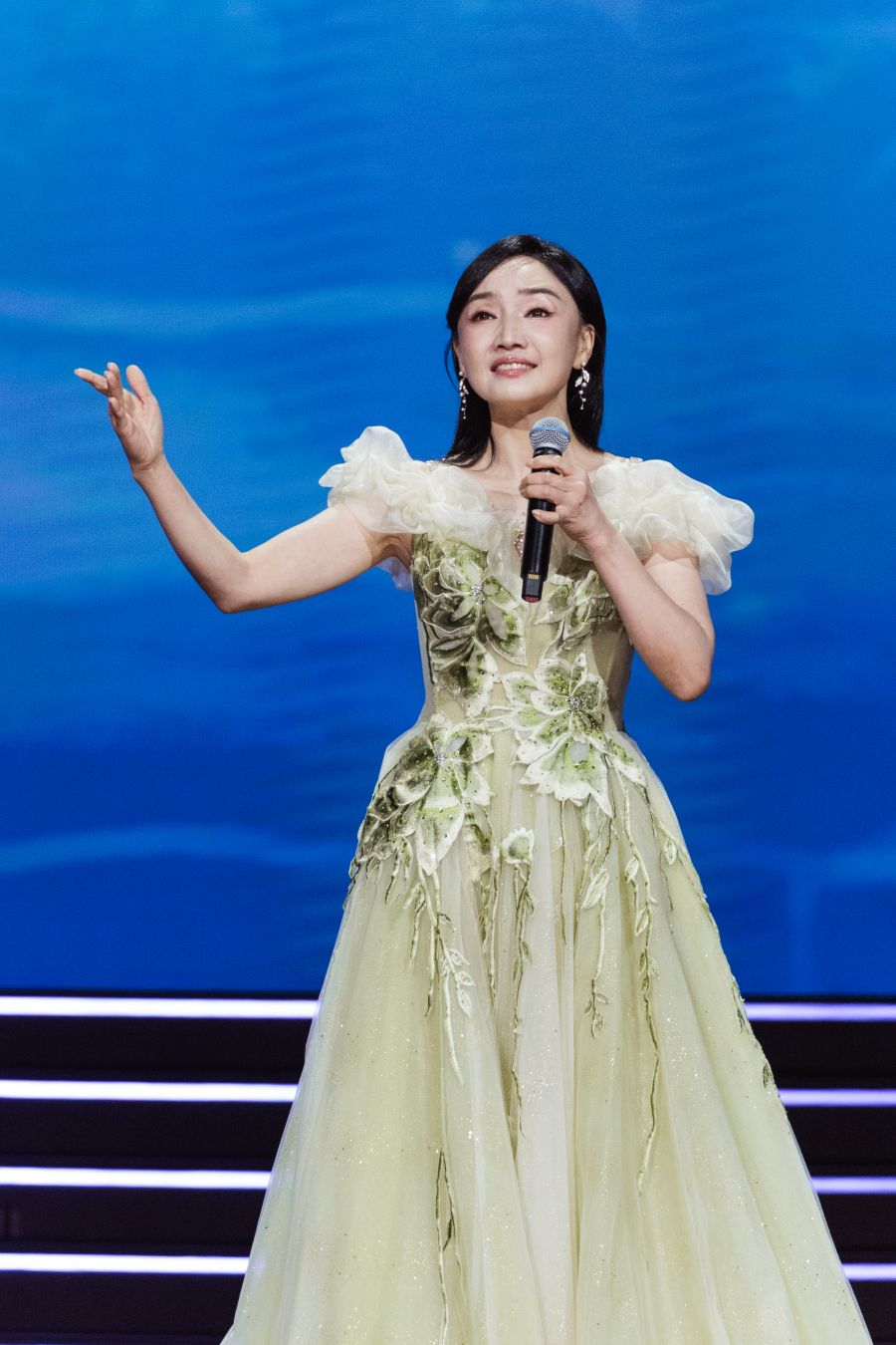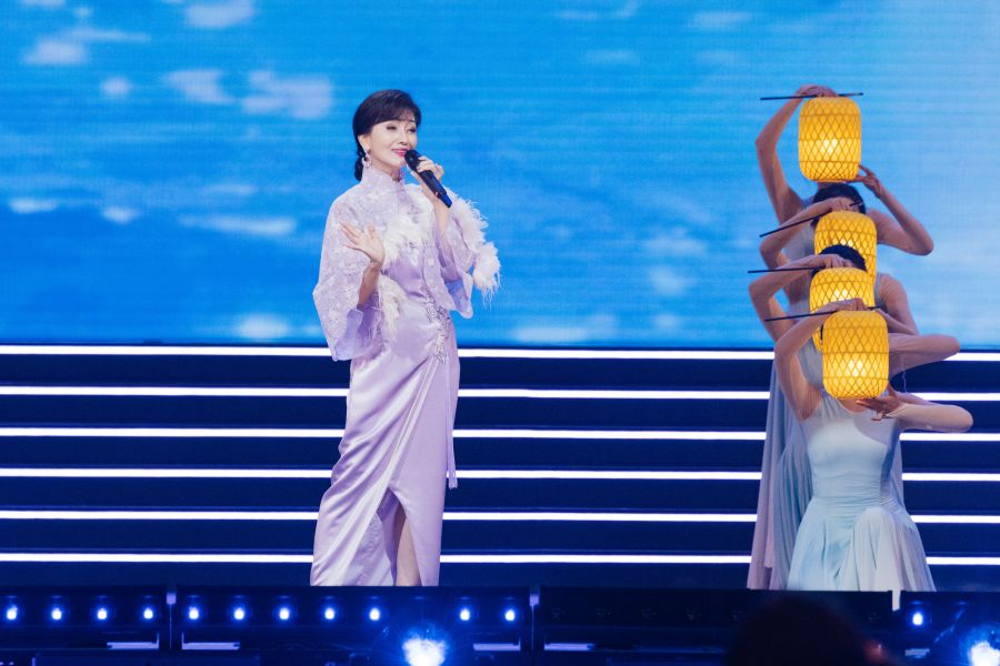 “把心交给你,将未来轻轻捧起,我的祖国,我的姐妹兄弟。”吕薇演唱《把心交给你》,歌声嘹亮高亢,饱含着对祖国的深情。
