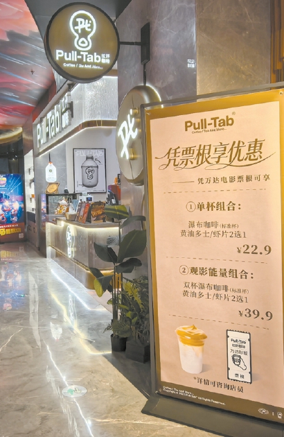 太阳宫寰映影城门口咖啡馆凭票根享优惠。