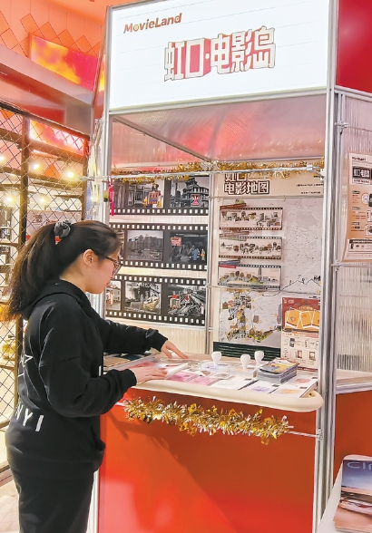 在凯德虹口商业中心金逸影城门口,记者看到一个名为“虹口·电影岛”的小亭子。影城工作人员介绍,配合电影地图推出的“打卡得扭蛋机会”活动很受欢迎。不少影迷看完电影后,就在这里打开MovieLand小程序,进入“上海电影地图虹口专区”,即可获得抽奖机会,兑换虹口建筑徽章、虹口电影票夹等文创产品。