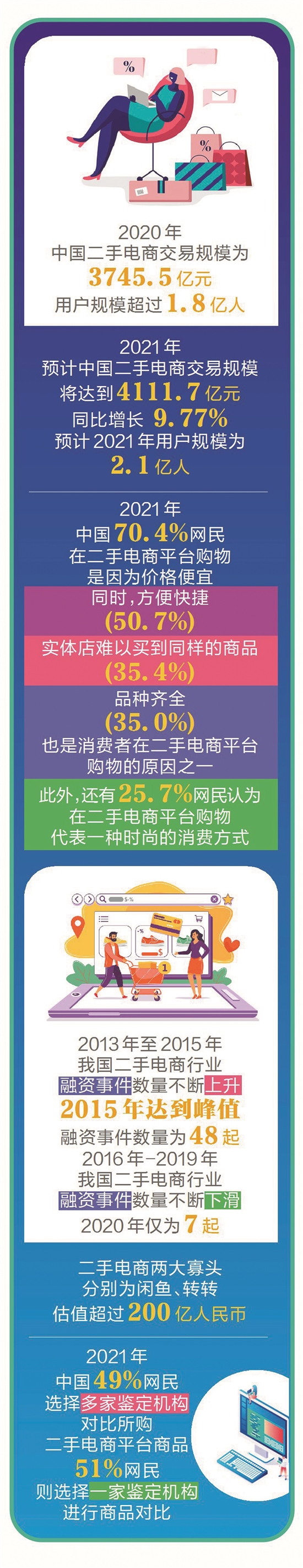 循環(huán)經(jīng)濟(jì)有望迎來大發(fā)展。近日,國(guó)家發(fā)改委等多部門印發(fā)“十四五”循環(huán)經(jīng)濟(jì)發(fā)展規(guī)劃的通知, 其中提出,要鼓勵(lì)“互聯(lián)網(wǎng)+二手”模式發(fā)展, 強(qiáng)化互聯(lián)網(wǎng)交易平臺(tái)管理責(zé)任,加強(qiáng)交易行為監(jiān)管,為二手商品交易提供標(biāo)準(zhǔn)化、規(guī)范化服務(wù)。羊城晚報(bào)記者梳理相關(guān)數(shù)據(jù)發(fā)現(xiàn),近年來人們“買二手、用二手”的接受程度上漲,在資本的助推下,國(guó)內(nèi)的二手交易平臺(tái)已經(jīng)形成了相當(dāng)規(guī)模,但在用戶逐年上漲、市場(chǎng)越來越火爆的同時(shí),二手交易也暴露出交易過程問題頻發(fā)的弊病,亟待監(jiān)管。