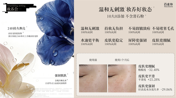 依托连续9年夺得7次IFSCC国际美妆大奖、拥有多项护肤成分全球专利的背书底蕴,百雀羚实现了“养肤”的技术落地。而这种严谨的科研体系,是百雀羚区别于国际奢牌与国货新锐的核心壁垒。它证明了养肤彩妆不是成分的随机堆砌,而是基于皮肤科学逻辑的“边妆边养”。这种以科技赋能美学的路径,正支撑着民族品牌夺回高端彩妆的话语权。