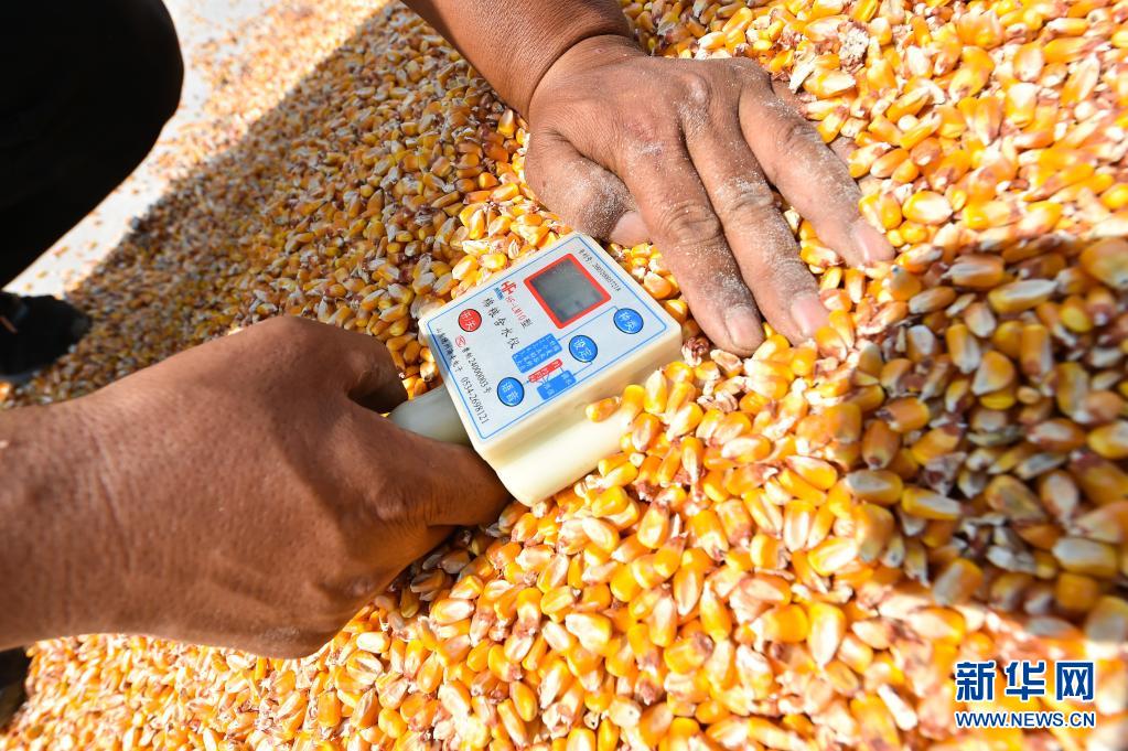 在山西省運城市萬榮縣南張鄉(xiāng)太趙村,種糧戶李挺用儀器測量玉米的含水量(2020年9月20日攝)。據(jù)李挺介紹,農(nóng)機GPS定位、無人機噴灑農(nóng)藥、機械化收割等已滲透到農(nóng)業(yè)生產(chǎn)的各個環(huán)節(jié),臉朝黃土背朝天的農(nóng)民變成了指揮機器高效種糧的“新農(nóng)夫”。
