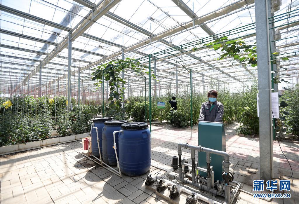 河北省饒陽縣一家現(xiàn)代農(nóng)業(yè)示范園區(qū)工人在智慧溫室操作水肥一體化設(shè)施(2020年4月8日攝)。近年來,河北省饒陽縣在推進(jìn)農(nóng)業(yè)供給側(cè)結(jié)構(gòu)性改革中,積極優(yōu)化農(nóng)業(yè)產(chǎn)業(yè)結(jié)構(gòu),依托現(xiàn)代農(nóng)業(yè)示范園區(qū)建設(shè),將自動滴灌、遠(yuǎn)程數(shù)據(jù)采集、智能電力溫控等先進(jìn)“工業(yè)化”技術(shù)應(yīng)用于農(nóng)業(yè)生產(chǎn)。