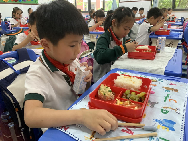 嘉興平湖市崇文小學(xué)學(xué)生營(yíng)養(yǎng)午餐中均配有學(xué)生奶