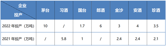 2022 年下沙季,酱香白酒行业排名前 10 位的企业投产量比上一年度同比增加 19.1%。