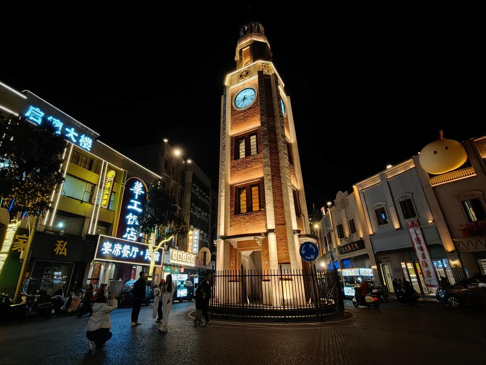 在赣州市阳明路标准钟夜市街,游客们正拍照留念。新华社记者 陈浚武 摄
