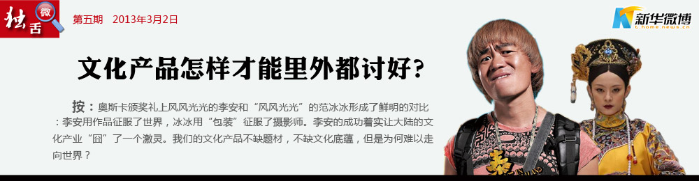 @月亮球:中國的文化產業(yè)正在面臨經濟全球化與民族性的兩難抉擇。為了追求影響力,中國的文化作品往往片面追求場面宏大,眾星加盟,但主題空洞,內容蒼白。