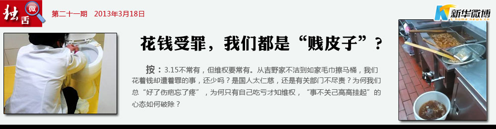 @食不果腹:【事不關己高高掛起】吉野家棄飯上桌,如家毛巾擦廁所,若是不遇3·15,想必事實必被埋沒,曝光丑態(tài)如此難,我沒遭遇干嘛管,人人都是此心態(tài),社會早晚成病態(tài)。