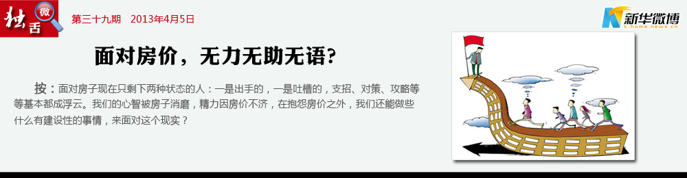 【當(dāng)“房”已成往事】 房事不要再提,政策已多風(fēng)雨,縱然現(xiàn)在買不起國五條后更買不起。真的要離了再娶,讓明天好好繼續(xù),你就不要再苦苦追問家庭信息。房價(jià)他是個(gè)難題,讓人目眩神迷,限價(jià)房或許可以廉租房卻太不容易。權(quán)力他不曾離去,房價(jià)就漲在那里,我對家仍有愛意,限購讓我無能為力。