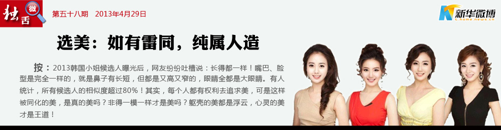 【選美?公然作弊?】 整容技術(shù)越來越先進(jìn),偽造美麗卻到了該反思的地步。韓國小姐的比賽分為真、善、美三個(gè)競賽部分?,F(xiàn)在看來,比賽已經(jīng)無法體現(xiàn)“真”這個(gè)部分了。