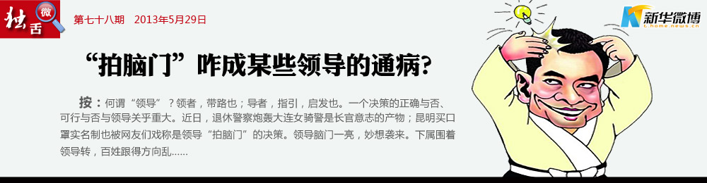 “拍”是通病 決策拍腦門,不管行不行;事后亂放炮,只求出功績?!I(lǐng)導通?。?br />