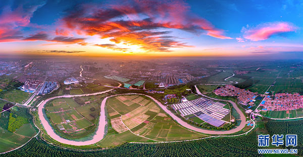 晚霞照古城(摄影:孔闯,拍摄地:山东省枣庄市台儿庄区)