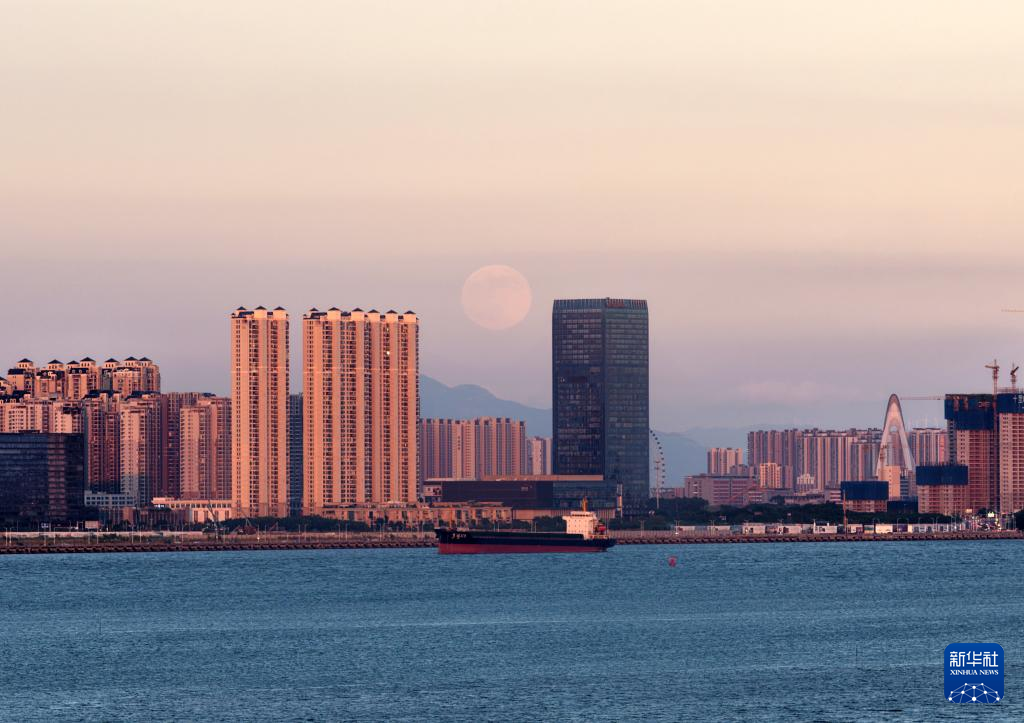 115日傍晚在广东汕头南滨路拍摄的超级月亮(无人机照片)。