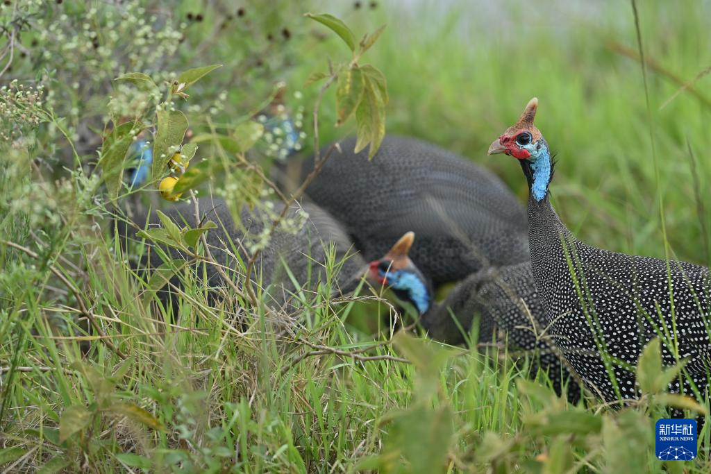 这是2月26日在肯尼亚内罗毕国家公园拍摄的珍珠鸡。