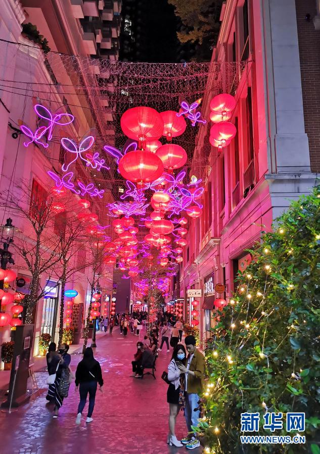 農歷牛年正月初一上午,香港著名商圈銅鑼灣一帶,雖受新冠肺炎疫情影響,人流較往年要少許多,但仍處處透露著新春喜慶氣息。商家門前大多擺著大盆年桔,上面綴著許多小紅包,春聯(lián)、櫥窗上的“?!弊执盎ɑ蛉缫饨Y等吉祥飾品,隨處可見。透過商場門,大盆桃花枝不時映入眼簾。