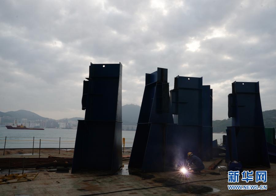 這是準(zhǔn)備安裝的香港將軍澳大橋主橋(2月25日攝)。新華社記者 李鋼攝